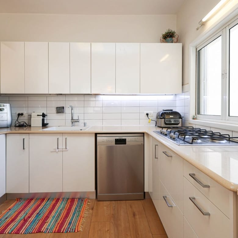 Exclusive!!! In the heart of Ra’anana – charming 4-room apartment, 90 sqm net (107 sqm per municipal tax records). Quiet rear-facing unit, tastefully renovated and designed, air-conditioned, upgraded kitchen, parquet flooring, bright living spaces. 5th floor with elevator, close to everything. Property No. 36472