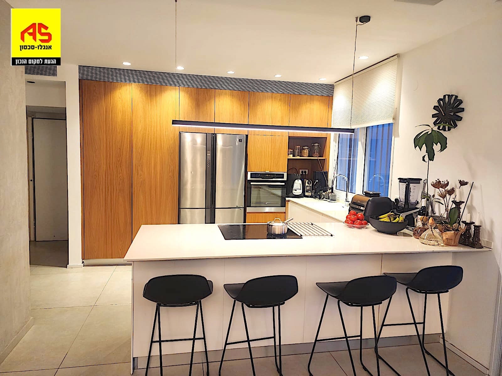 In the HaPrachim neighborhood – beautiful 4-room garden apartment with meticulous architectural design. 112 sqm net interior, surrounded by a lush 124 sqm garden with fruit trees, HaPrachim, herbs, and multiple seating and entertaining areas. Double covered parking. Property No. 35915