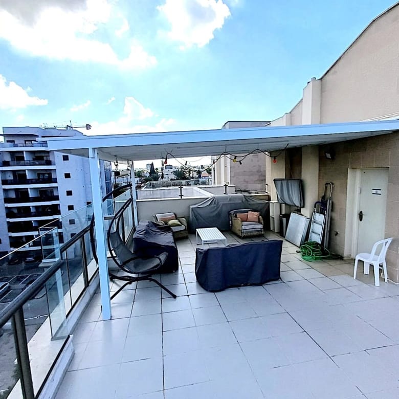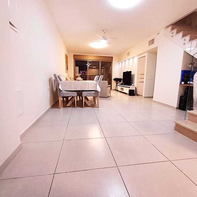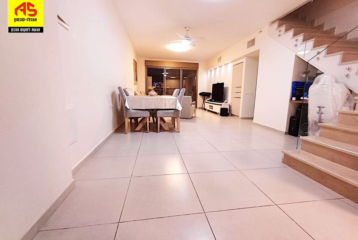 In the city center – 5-room duplex including secure room, 167 sqm built with terraces of 12 sqm and 82 sqm. Rear-facing and quiet, 4th floor, Shabbat elevator, double parking, and storage room. Asking price: 4,990,000 NIS. Property No. 36136