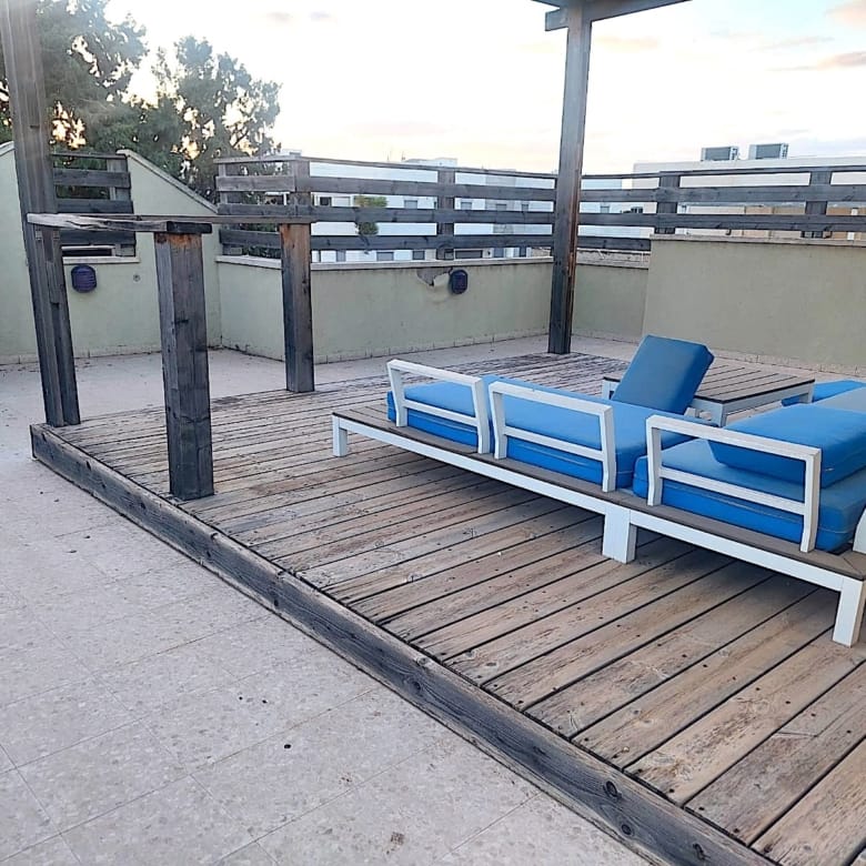Exclusive in the city center. Very large 6-room duplex, 176 sqm, with a fully separate private entrance. Features a modern kitchen, storage room, elevator, sukkah balcony, and covered parking. Property No. 35980