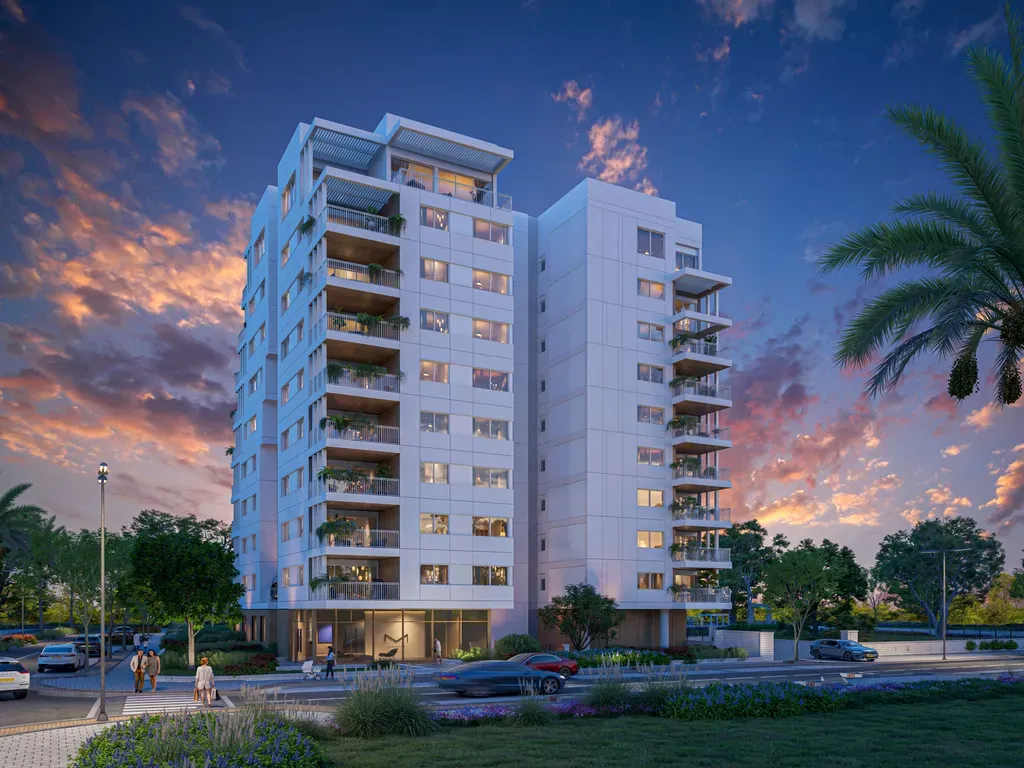 AMPA Glil Yam – New Build in Glil Yam, Herzliya | AMPA Glil Yam is an exclusive boutique residential project located in the most sought-after western section of the new Glil Yam neighborhood. Designed as an architectural masterpiece, the nine-story building includes only 35 apartments, each planned without shared walls and benefiting from 3.5 air directions for maximum privacy, light, and ventilation. Apartments feature modern functional interiors, premium finishes, and luxury kitchens, delivering a rare living experience defined by openness, quiet, and refined design.