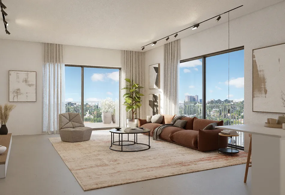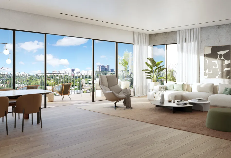 Asherman 32 – Ramat HaTayasim, Tel Aviv | Asherman 32 is an innovative boutique residential complex located in a quiet green area between Ramat HaTayasim and Ramat Chen. The project includes two 7-story buildings with separate entrances, offering an intimate living experience focused on family comfort, sustainability, and community. Each floor features only four apartments with a shared protected space, while apartments include rich specifications, advanced climate systems, improved thermal insulation, private storage, and parking. The project integrates shared workspaces, yoga and Pilates rooms, residents’ lounges, and a retail promenade beneath the buildings. Its strategic location provides fast access to Ayalon interchanges, the future Purple Line light rail, and Tel Aviv’s cultural and commercial centers.