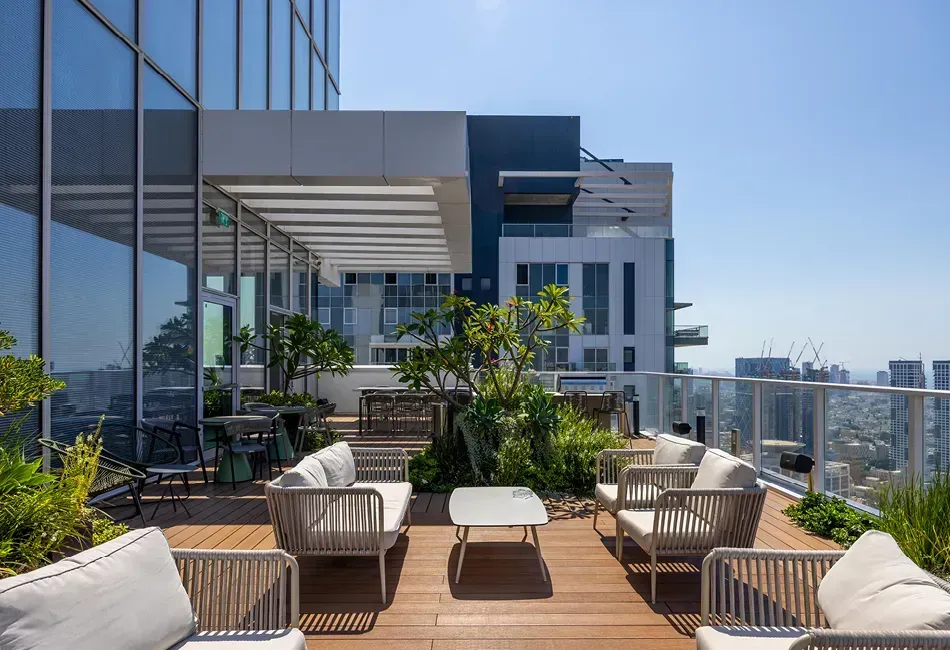 Azrieli Town – Tel Aviv | Azrieli Town is a luxury residential rental tower located on Menachem Begin Road in Tel Aviv, offering professionally managed living by the Azrieli Group. The project features fully designed 3-room apartments with covered parking, private storage, and all-inclusive rent. Residents enjoy premium amenities including a fully equipped gym, a residents’ club on the 51st floor, coworking spaces, a grand lobby, and on-site management and maintenance. Situated near the Red Line light rail and major transportation arteries, Azrieli Town provides a worry-free, high-standard urban rental experience.