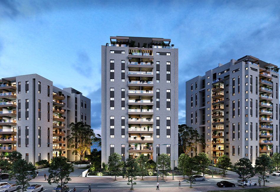 3–5 room apartments, garden units, duplexes, and penthouses starting at ₪3,050,000