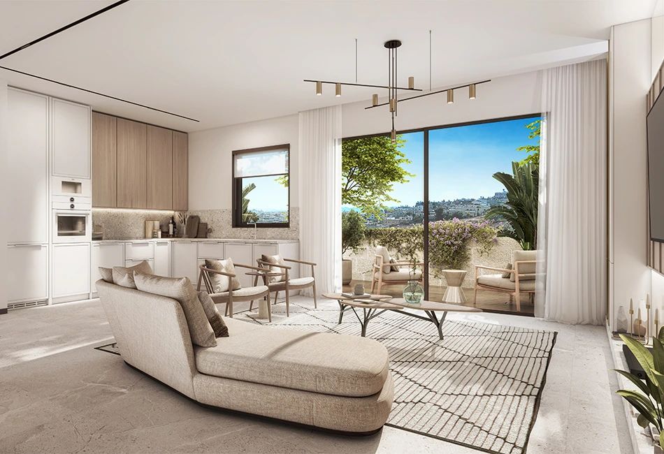 Built using a terraced construction technique that leverages the elevated location to bring fresh mountain air and panoramic Jerusalem views into every apartment.