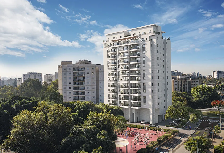 OLIVER – New Build in Neve Chen / Kfar Shalem East, Tel Aviv | OLIVER is a contemporary residential tower located on Sheshet HaYamim Boulevard in the quiet and green Neve Chen area of eastern Tel Aviv. Developed by Azorim in collaboration with Shalom Et Natan, the 13-story building offers spacious 5-room family apartments designed to high construction standards. The project benefits from proximity to the future Purple Line light rail, major transportation arteries, schools, community facilities, and cultural centers. OLIVER represents the growing appeal of eastern Tel Aviv, offering quality urban living in a peaceful residential environment.