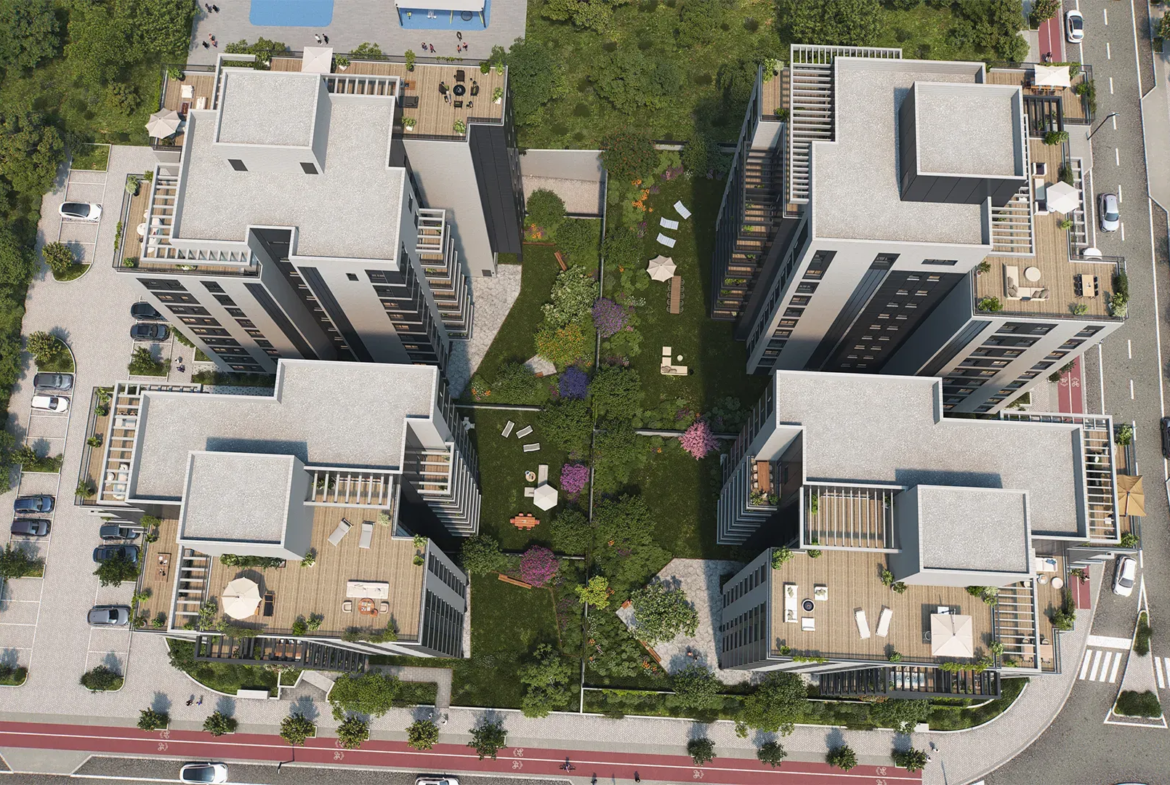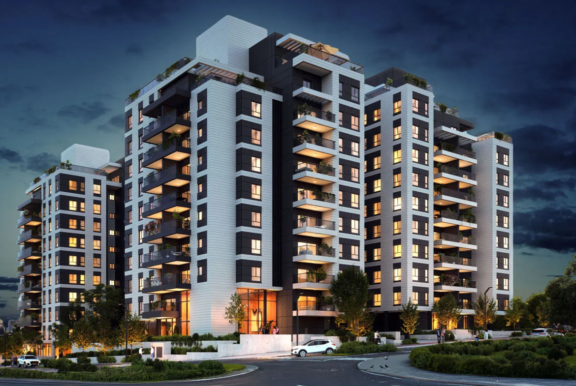 Shuster Ra’anana – HaMe’a Neighborhood | Shuster Ra’anana is a modern residential complex located in the HaMe’a neighborhood, consisting of five boutique buildings rising 9–10 stories and arranged around a landscaped green courtyard. The project offers a diverse mix of 3–5 room apartments and duplexes, all designed with meticulous attention to detail and high-end finishes. Residents benefit from shared facilities, a strong sense of community, and close proximity to educational institutions, parks, and central traffic routes. The project emphasizes quality living, modern architecture, and a balanced urban lifestyle suitable for all stages of life.