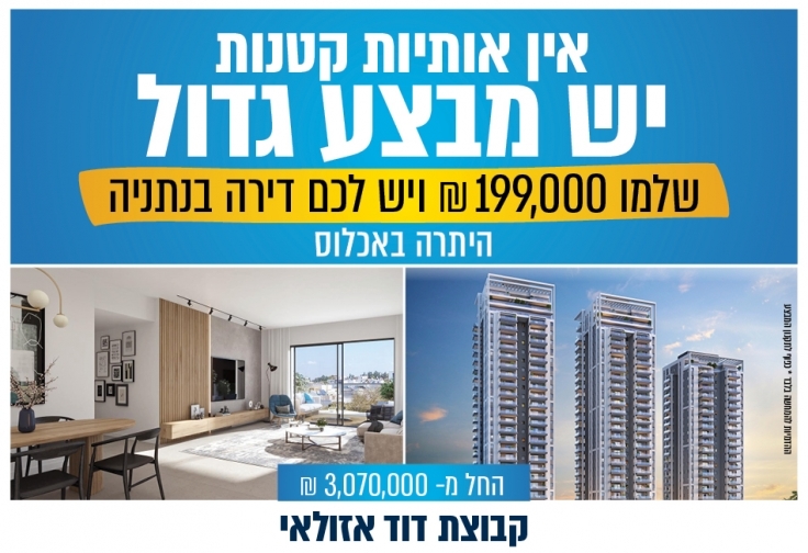 Pay ₪199,000 and get your apartment in Netanya – the balance upon occupancy.