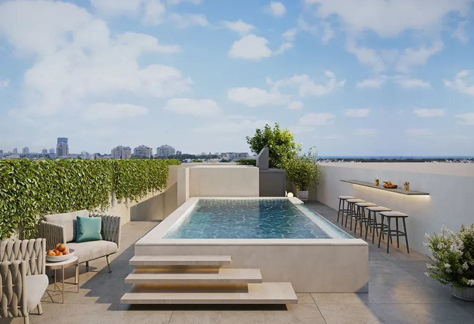 Yehuda HaMaccabi 17 – New Build in Old North, Tel Aviv | Yehuda HaMaccabi 17 is an intimate boutique residential project by RAYK, located on one of the most sought-after streets in Tel Aviv’s Old North. Designed by Zait-Lev Architects, the project offers 2–4 room apartments, green garden residences, duplexes, and luxury penthouses with private pools. All homes feature premium specifications including Bulthaup kitchens, advanced glazing, high-quality finishes, and designer bathrooms. Built to green-building standards, the project includes a modern lobby, elevator, private residents’ garden, and bicycle room, all within walking distance of Yarkon Park, Tel Aviv Port, and the vibrant Dizengoff area.
